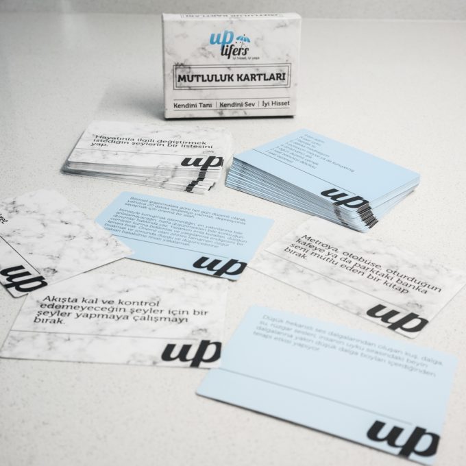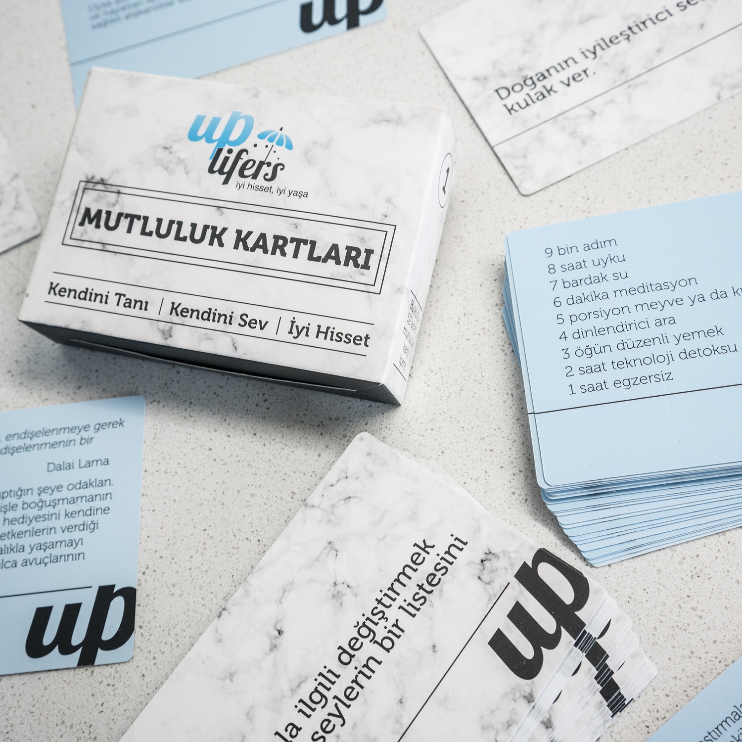Sürdürülebilir mutluluk; kendini tanımak, kendini sevmek ve iyi hissetmek için bilinçli ve düzenli olarak yapacağın davranışların bir sonucu. Uplifers Mutluluk Kartları, mutluluk yolunda attığın her adımda kendini daha iyi anlamanı sağlayacak soru ve önerilerden oluşuyor.