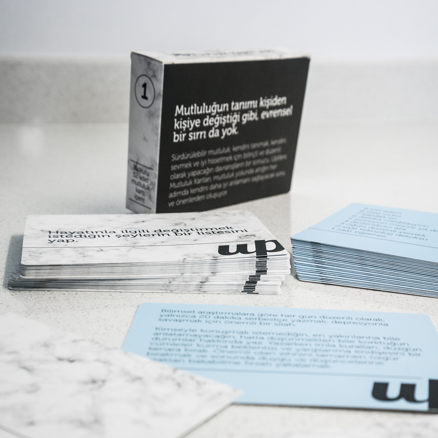 - Bir kutu 52 adet mutluluk kartı içerir.