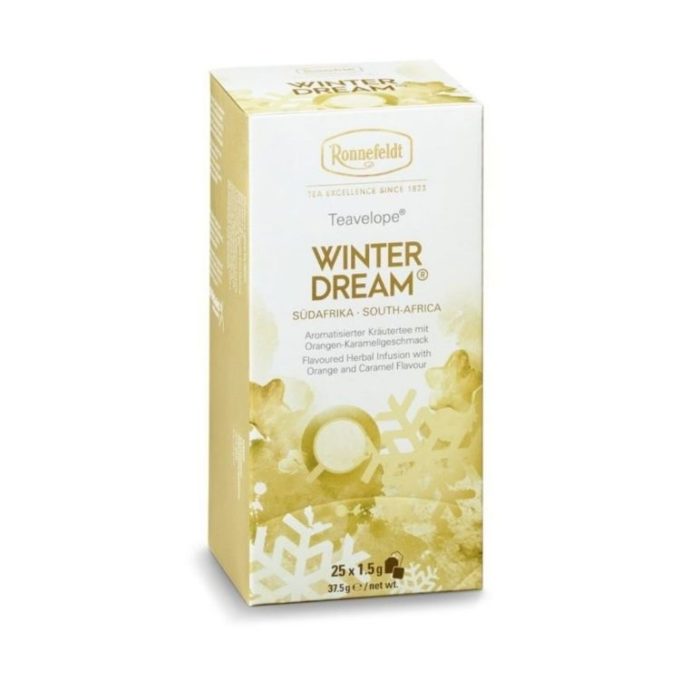 Yoğun kış baharatları, karamel ve portakalların güçlü aroması ile tam gövdeli nefis rooibos harmanı. Sadece kış değil, her mevsim tercih edilen rooibos, böğürtlen yaprakları, tarçın, portakal kabuğu, karanfilden oluşan nefis Ronnefeldt harmanı. İthal Teavelope® Serisi organik ve çevre dostu doğada çözünen filtrelerden oluşan 25 adet premium süzen poşet çay içerir.
