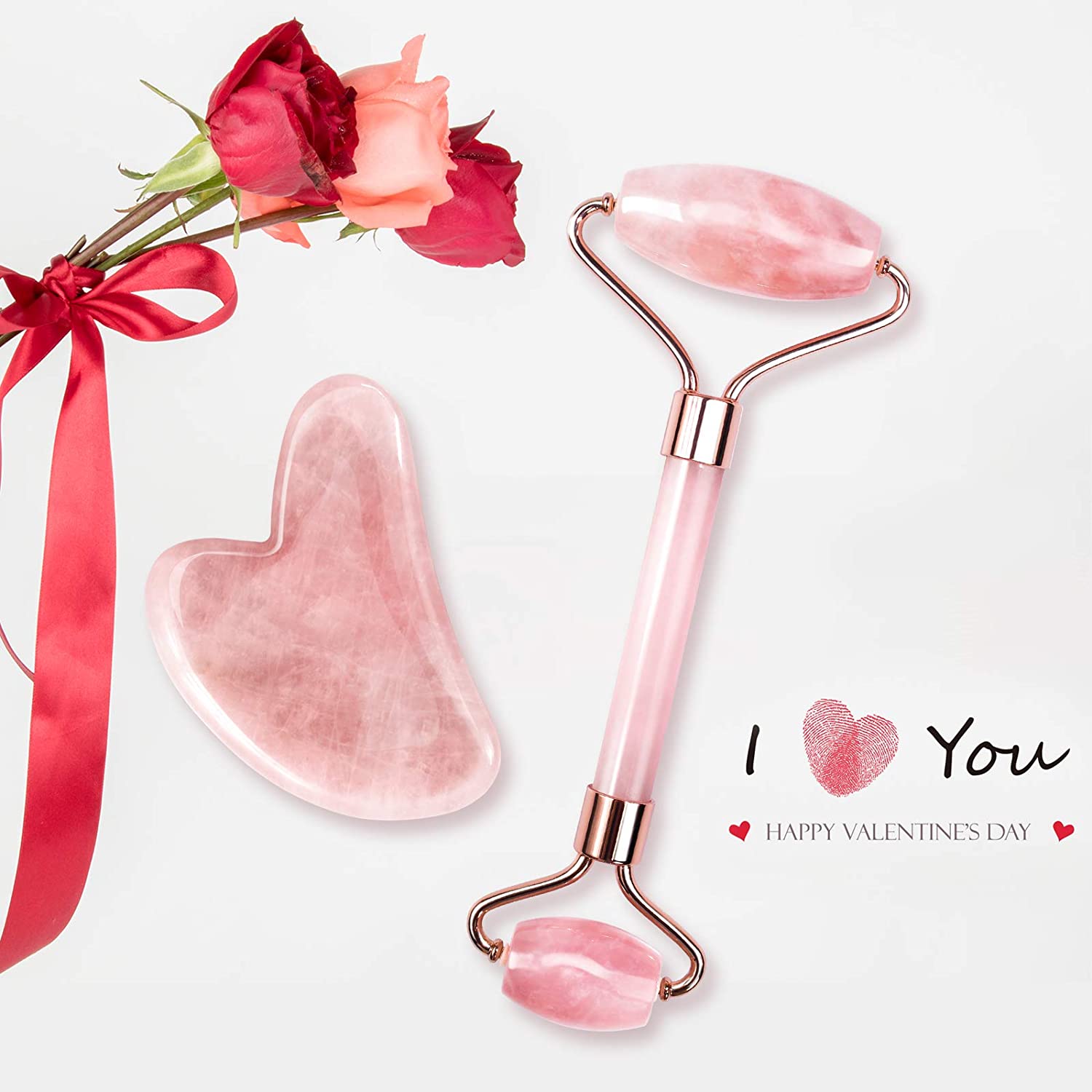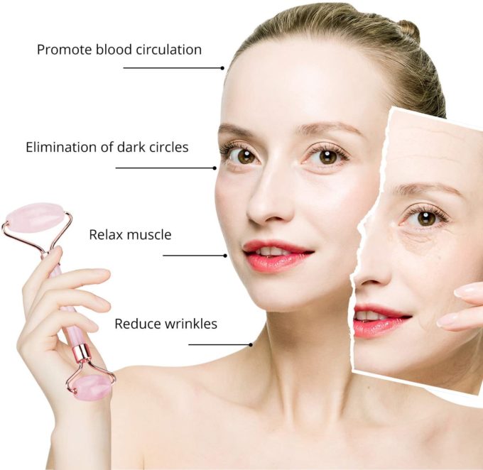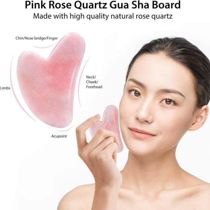 Cilt masaj aleti (jade roller) Guasha taşı, cilt bakımında önemli bir yere sahip. Çift Taraflı Cilt Masaj Aleti Rose Quartz Roller & Gua Sha Set Kutusu, %100 Orijinal Pembe Kuvars Taşından üretilmiştir. Yüz kaslarınızı ve cildinizi soğuk ve ferahlatıcı etkisi sayesinde rahatlatır. Tıkanıklığı ortadan kaldırır ve iltihabı azaltır.Kan dolaşımını hızlandırır ve cilt tonunu düzenler. Şişkinlik ve kırışıklıkları azaltır. Gözaltı morluklarını ortadan kaldırır.