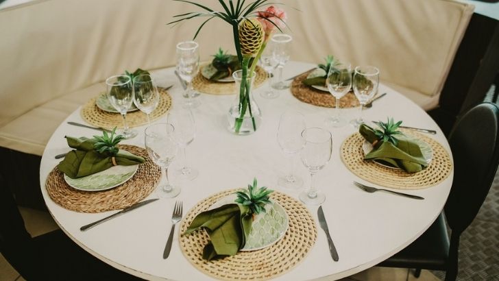 Canlı çiçekleri yaz masalarınızda sadece dekor amaçlı değil daha işlevsel şekillerde kullanabilirsiniz. Örneğin büyük bir çiçeği peçetelik olarak kullanmak iyi bir fikir olabilir.