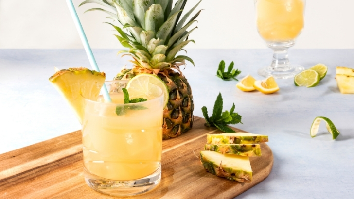 - Bardakları mango ve ananas dilimleri ile süsleyerek servis yapın.