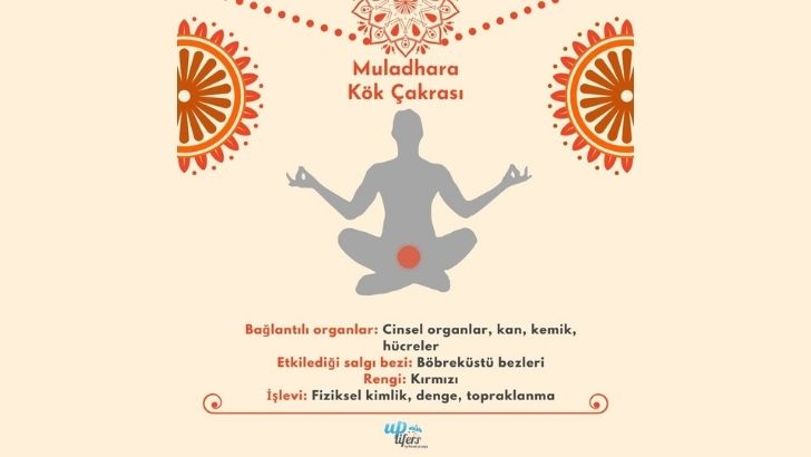 Omurganın en uç noktasındaki kuyruk sokumunda bulunan kök çakrası, Sanskritçe kök anlamına gelen ‘mula’ ve destek anlamına gelen ‘dhara’ sözcüklerinin birleşimidir. Gücü ve canlılığı temsil eden, parlak ve yoğun kırmızı renkteki kök çakrasının elementi topraktır. Kök çakrası adından da anlaşılabileceği üzere köklerimizi ve ‘toprak ana’ ile olan bağlantımızı temsil eder. Bu yüzden rolü, içsel enerjimizi toprağa aktararak hayatta kalmamızı sağlamak, yani enerji bedenimizi topraklamak olarak bilinir.