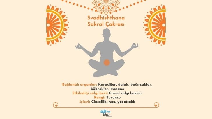 Sanskritçe’de ‘benliğin yeri’ anlamına gelen ‘Swadhishthana’ kelimesiyle ifade edilen sakral çakrası, karnın alt bölgesinde, bel omurları seviyesinde bulunur; duygusallık ve yaratıcılıkla ilişkili olduğuna inanılır. Sakral çakrasının elementi sudur ve bu nedenle bu çakranın enerjisi akış ve esneklik ile bağdaştırılır. Sakral çakranın işlevi zevk ilkesine göre belirlenir. Hayattan, cinsellikten, ilişkilerinizden, kendinizle ilgili algınızdan ne kadar zevk aldığınız sakral çakrasındaki enerjinin dengede olup olmamasıyla bağdaştırılır.