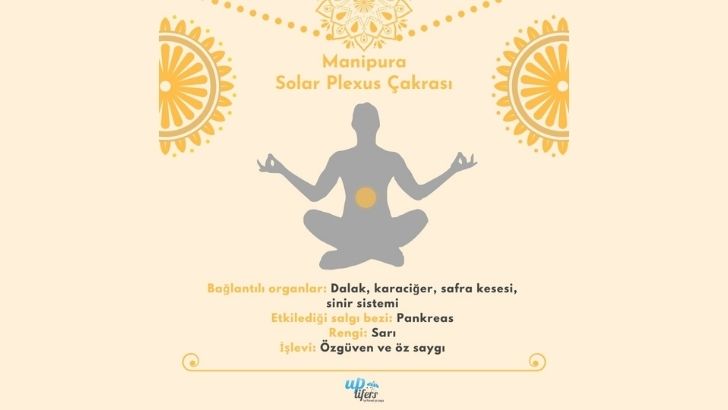 Solar plexus çakrası karnın üst bölümünde, diyaframın bulunduğu yerde konumlanıyor. Sarı renkle temsil edilen solar pleksus çakrası enerji, güç ve kararlılığı temsil eden ateş elementi ile ilişkilendiriliyor.