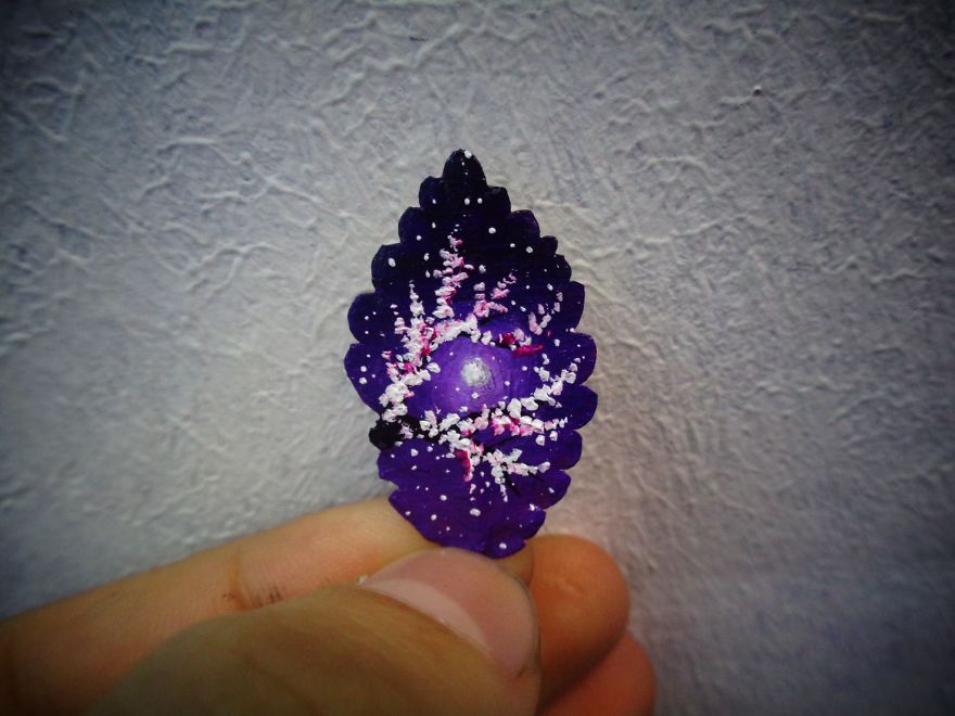 ‘Yaprağı tuval olarak kullanma fikrini soranlara ise nereden geldi?’ diye soranlara cevapları kısa ama oldukça güzel ‘Aşktan’. İkili bir sonbahar günü parkta yürürken Nancy yerden bir yaprak alıyor, birbirlerine bakıyorlar ve yaratmaya karar veriyorlar. İşte ikilinin sonbahar kadar güzel çalışmaları: