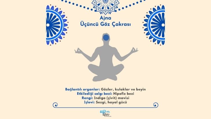 Sanskritçe adı ‘komuta merkezi’ anlamındaki ajna olan üçüncü göz çakrası tüm endokrin sistemi salgılarının kontrolünden sorumlu olan hipofiz beziyle bağlantılıdır. Bu özelliğiyle de üçüncü göz çakrası aslında bir kontrol merkezi olarak görülür.