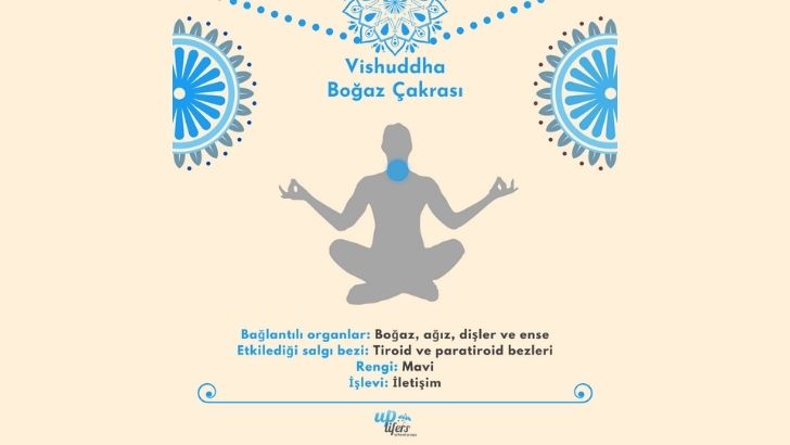 Sanskritçe adı Vishuddha olan boğaz çakrası gerçeğin ve açıklığın sembolü olarak bilinir. Sesinizdeki gerçekliği, samimiyeti, ve eşsizliği olduğu kadar başkalarını dikkat vererek dinleme, samimi iletişim kurma ve kendinizi sözle, yazıyla, sanatla etkili şekilde ifade edebilme becerilerinizle bağlantılıdır. Fiziksel bedendeki boyun, boğaz, kulaklar, dil, çene, dişler ve tiroid beziyle bağlantılı olan boğaz çakrası, diğer tüm çakralardan gelen bilgilerin iletişiminden sorumludur. Boğaz çakrasının ana elementi düşüncelerinizi dile getirmenize olanak veren sestir.
