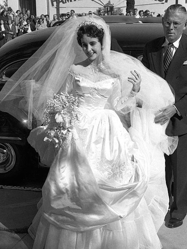Kendisi sekiz defa evlendi ancak benim hafızamda ilk gelinliği ile yer alıyor. Kabarık, bol tüllü ve yarım uzunluktaki duvaklı bir model siyah saçları ve menekşe gözleri ön plana çıkararak tarihin ikonik gelinlikleri arasına yerini aldı. İlk eşi kimdi derseniz? Conrad Hilton.
