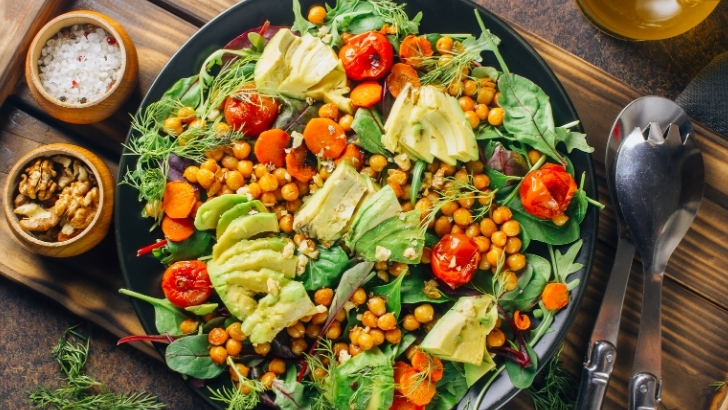 - Üzerine küp doğranmış domates, salatalık ve kıyılmış maydanozu ilave edin.