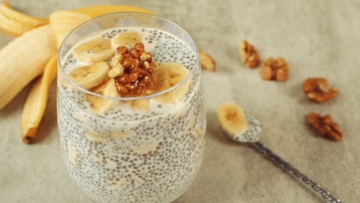 - Karışımı en az 30 dakika veya gece yatmadan önce koyup sahura kadar buzdolabında bekletin, böylece chia tohumları sıvıyı emip puding kıvamına gelecektir.