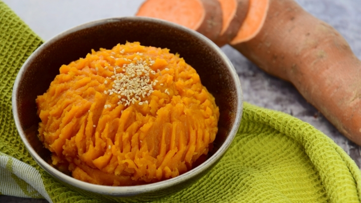 - Doğranmış tatlı patatesleri bir tencereye alın, üzerini örtecek kadar su ekleyin ve orta ateşte yumuşayıncaya kadar pişirin.