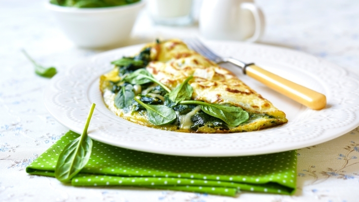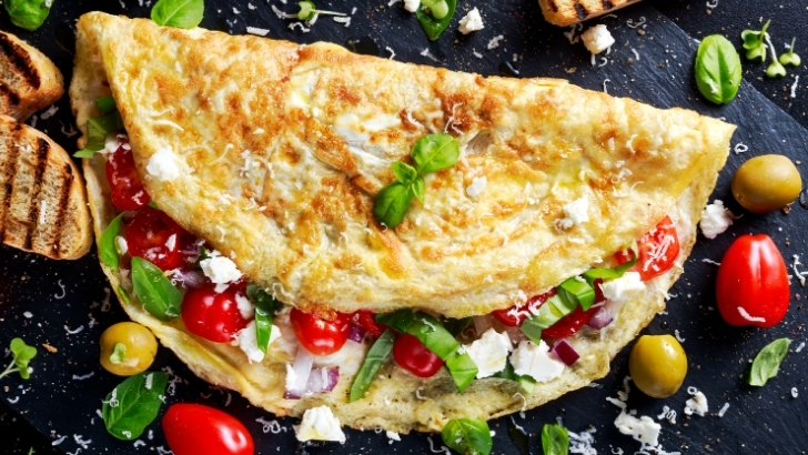 - Düşük ısıda omleti pişirin. İsteğe bağlı olarak omletin bir yüzüne rendelenmiş peynir serpip, peynir eriyene kadar kapak kapalı pişirin.