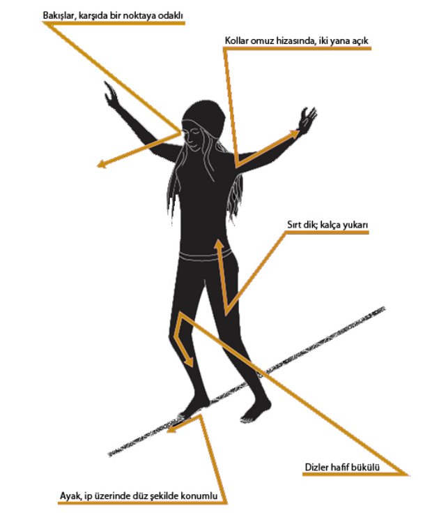 – İp üzerindeki ayağınızı bükerek dengenizi daha çabuk sağlayabilirsiniz.