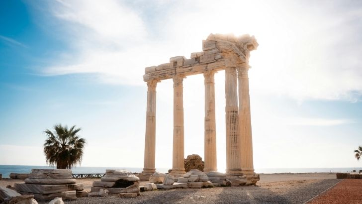 Side Apollon Tapınağı, AntalyaSide Antik Kenti’nin en önemli yapılarından olan Side Apollon Tapınağı, deniz kenarındaki manzaralı konumu ve akantus yapraklarıyla bezeli sütun başlıklarıyla ünlü. Antik Side Limanı’nın tanrı Apollon’a emanet edildiğini simgeleyen tapınak, özellikle gün batımında aldığı sıcacık renkler altında büyüleyici bir güzelliğe bürünüyor. Kentin mimari zarafetinin en güzel örneklerinden olduğundan kesinlikle görülmesi gereken bir kültür mirası olarak geçiyor.