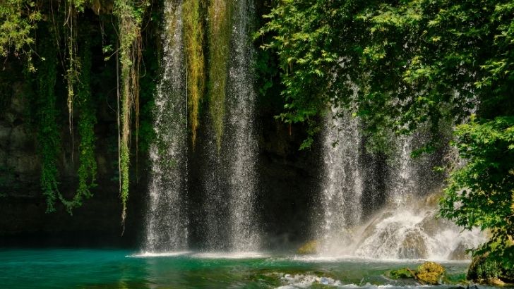 Antalya’nın bir diğer popüler doğal güzelliği olan Düden Şelalesi, yer altı sularıyla beslenmesi sebebiyle dikkat çekiyor. Bu eşsiz doğal oluşum, yemyeşil bir parkın içinde yer alıyor ve arkasında geniş bir mağara barındırıyor. Temiz suları ve serin havası, burayı turistik bir cazibe merkezine dönüştürüyor.