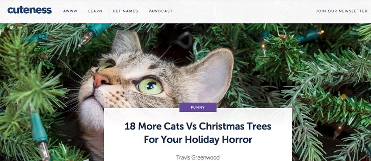 Bir internet sitesi olan Cuteness, evcil hayvanı olan veya hayvan severlere ihtiyaç duyabilecekleri neredeyse her şeyi sunuyor. Evcil hayvanlarla ilgili bilgiler, eğitim tüyoları, kendin-yap eşyalar, isim önerileri, veya komik hayvan videolarına kadar her şey var.