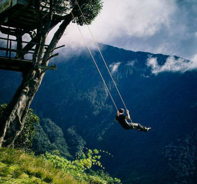 Ekvador’da bir uçurumun kenarın yapılmış olan salıncakla heyecan verici deneyimler yaşanıyor. Herhangi bir güvenlik önlemi alınmadan yapılan bu salıncakla sallanan insanlar, dünyanın sonuna doğru sallandıklarını söylüyorlar. Turistik amaçla yapılan bu salıncağa ulaşmak için deprem araştırmaları için kullanılan La Casa del Árbol istasyonuna kadar yürümeniz gerekiyor. İşte size bu heyecan verici deneyimi yaşayan insanlardan bazı kareler:
