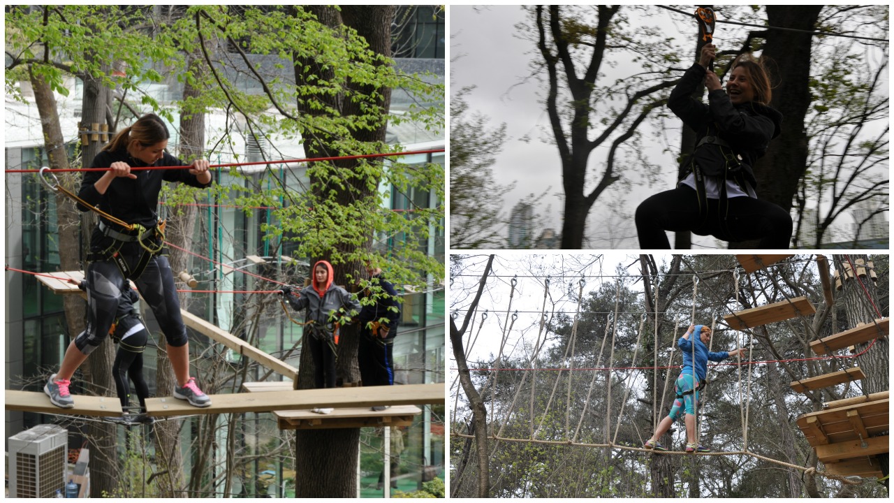 Toplam 2 saat süren, 8000 m2’ye yayılmış, 5 etaplı parkurda yok yok. Zip line denilen ip geçişleri, slack line denilen ip/çelik halat üzerinde yürüyüşler, dikey ve yatay duvar geçişleri, hareketli kalas geçişleri ve daha neler neler…