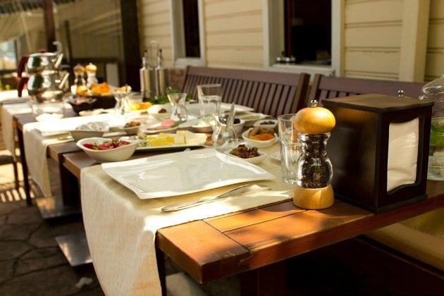 Rumeli Hisarı’nda, muhteşem Boğaz manzarası eşliğinde, 4000 m2 alanda, mavi ve yeşilin dansı ile sizi kahvaltıya davet ediyor! GastroClub üyelerine %15 daha avantajlı ağırlanma imkânı sunuyor bir de. Sabah keyfi peynir çeşitlerinden zeytin çeşitlerine, tazecik maydanozdan, biberden, hindi fümeye, 35 çeşitten oluşan kahvaltılıklar kuru incir, kayısı, ceviz içi, kuru üzüm ile güne sağlıklı bir başlangıç sunuyor.