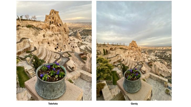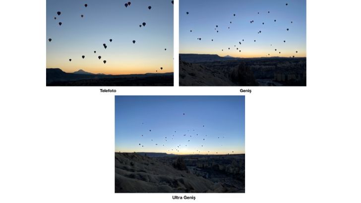 Kapadokya’da hava şartları uygun olduğunda her sabah gün doğumuna yakın yüzlerce sıcak hava balonu havalanıyor. Bu görsel şöleni fotoğraflamak için iPhone 11 Pro’nun 3 kamerasını da epeyce kullandım. Her üç kamera açısında da balonları ve Kapadokya’nın muhteşem doğasını detaylı bir şekilde fotoğraflamak mümkün oldu. iPhone 11 Pro az ışıkta bile etkileyici görüntüler sunabiliyor.