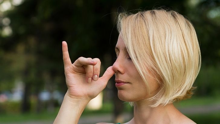 Bu egzersizi bağdaş kurarak ya da yere boylu boyunca uzanarak yapabilirsiniz. Sağ burun deliğinizi parmağınızla kapatın ve sol burun deliğinizden 10 kez derin nefes alın.