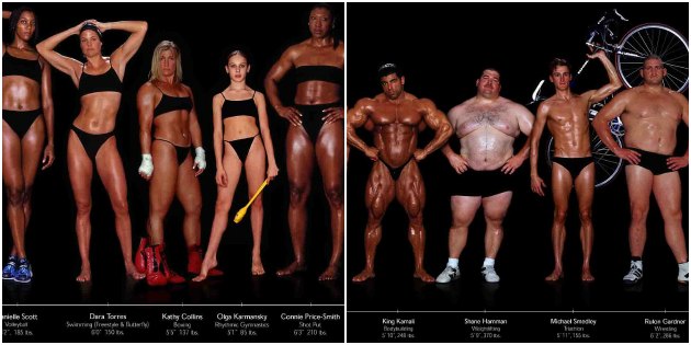 Bu tip düşüncelere dalmışken aklıma daha önce görmüş olduğum ve 2002 yılında gerçekleştirilmiş bir fotoğraf serisi geldi: Howard Schatz’ın Athlete serisi aslında atletlerin, yani belli bir amaç doğrultusunda performansını en üst seviyeye taşıyan farklı branşlardan insanların, vücutlarının o sporun gerekliliklerine göre, trendlerden ve estetik kriterlerden bağımsız olarak şekillendirdiklerini gösteriyor.