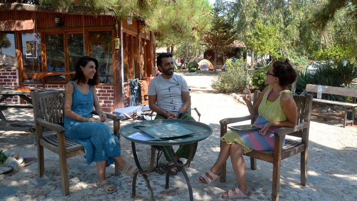 Şahan Gürkan: Ben 98 yılından beri opera sanatçısıyım. Önce 10 yıl İstanbul Operası’nda, ardından Samsun Operası’nda çalıştım. Yaklaşık yedi yıldır da opera rejisörlüğü yapıyorum. 20 yıl önce annem Nazire Terzioğlu gerçek bir sanatsever, sanat aşığı olarak domates tarlası olan bu alanı bir sanat köyü haline getirme hayalini hayata geçirdi. Biz ticaret erbabı olmadığımız için de kendimiz gibi bir yer hayal ederek bu kampı kurduk ve sanata, sanatçıya ev sahipliği yaparak uzun yılları devirdik.