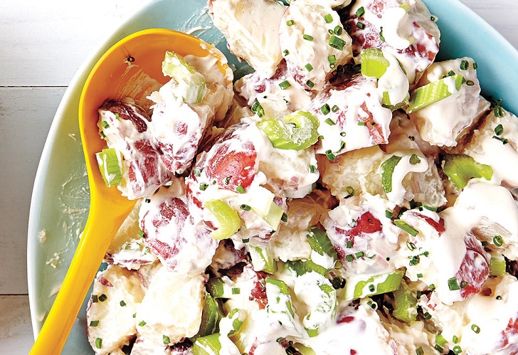 - Doğramış olduğunuz yeşillikleri de salata kasesine aktarın. Patateslerle birlikte harmanladıktan sonra sosunu ilave edin ve patateslerin ezilmemesine özen göstererek yavaşça karıştırın. Bekletmeden servis edin.
