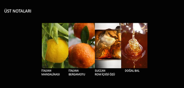 İtalyan bergamotu ve mandalinası karanlık bir havuzun dibindeki bir pırlantanın göz kırpması gibi ferah ve mücevher ışıltısı veriyor. Succan Rom içki özü—fazlasıyla arındırılmış rom ekstresi—karemelize, lake şeker kamışı notası içeriyor. Işıltılı bal ise parfümün arka planındaki yumuşak ve kremsi vanilya notalarını karşılayarak; parfümün dokusunu ve boyutunu belirliyor. Bal ve vanilyanın bir araya gelmesinden oluşan bu parfüm cinselliği çağrıştıran, son derece vahşi ve sıcak bir kokuyu ortaya çıkarıyor.