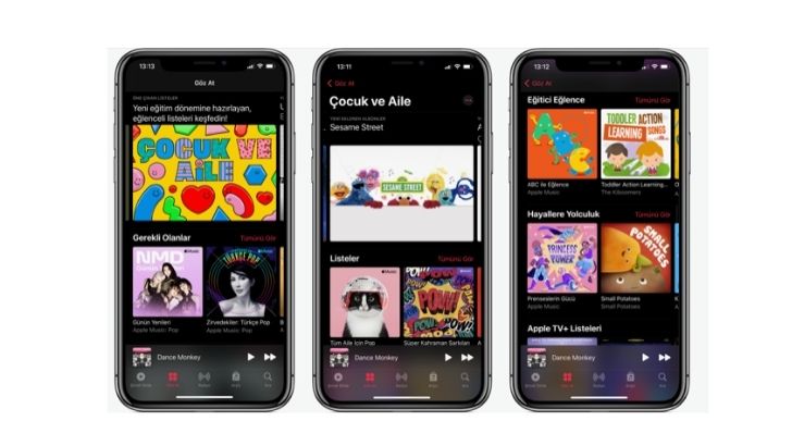 Pandemi sürecinde, Apple Music’te Çocuk ve Aile içeriklerini dinlemek için harcanan sürede önemli bir artış görüldü. En dikkat çeken nokta da, ailelerin aktif kalmanın ve eğlenmenin yollarını araması nedeniyle Ailece Dans Partisi ve Çocuklar İçin Dans Partisi, Tüm Aile İçin Pop ve Çocuklar İçin İspanyolca Şarkılar gibi popüler çalma listelerinde dikkat çekici bir artış gözlendi ve Çocuklarla Yolculuk çalma listemiz, bu yaz sosyal mesafeye uyarak tatil yapmak üzere yola çıkan aileler için kurtarıcı oldu. Apple Music ile, iPhone, CarPlay, Apple Watch, iPad, iPod Mac ve Apple TV’nizde veya internette kesintisiz bir şekilde müzik dinleyebilirsiniz. Apple Music, Android cihazlarda da kullanılabiliyor.