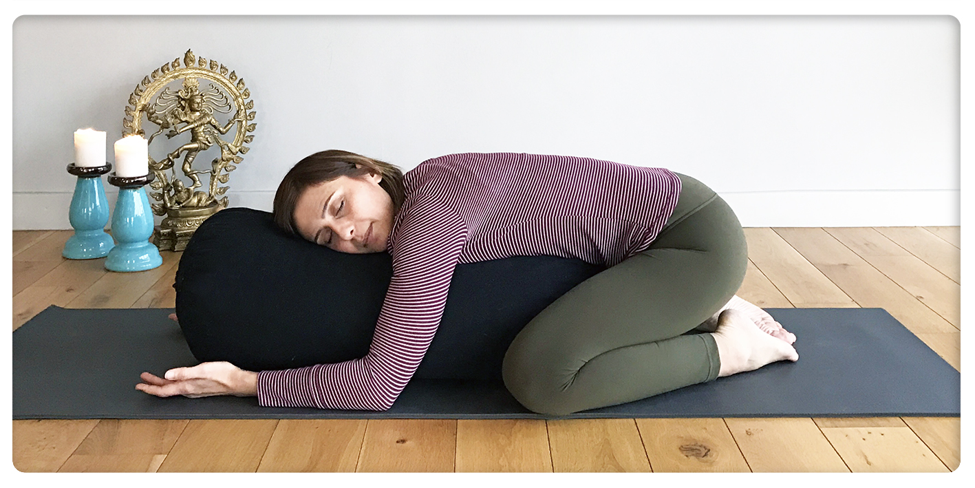 Bu pozu yapmanın bir kaç yolu var. Biz biraz daha restoratif bir formunu uygulayacağız. Dört ayak üzerine gelip dizleri ayırın. Ayak baş parmaklarınız birbirine değmeye devam etsin. Kalçayı geriye. topuklara doğru indirin ve gövdenizi ya büyük bir yastığın üzerine (ya da iki yastığı üst üste koyarak) bırakın. Kolları gevşek bir biçimde ileri doğru ya da geriye, ayaklarınıza doğru uzatabilirsiniz. Başnızın yastığın üzerinde ağır olmasına izin verin.