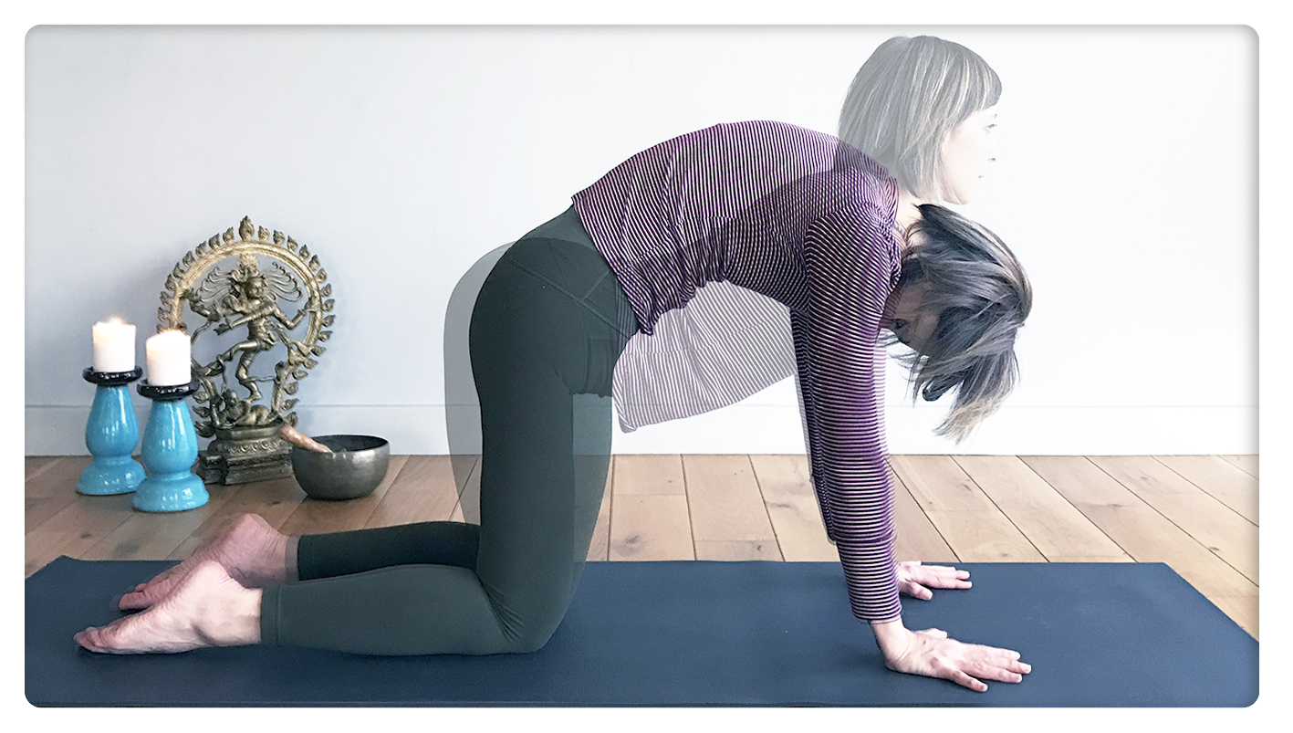Bu akışı yapmak için dört ayak üzerine gelin. Nefes alışlarda baş tepesi ve oturma kemiklerini yukarı kaldırın ve nefes verişlerde başı ve kuyruk sokumunu yere doğru ağırlaştırarak sırtı yuvarlayın. Nefesinizle uyum içinde akın.