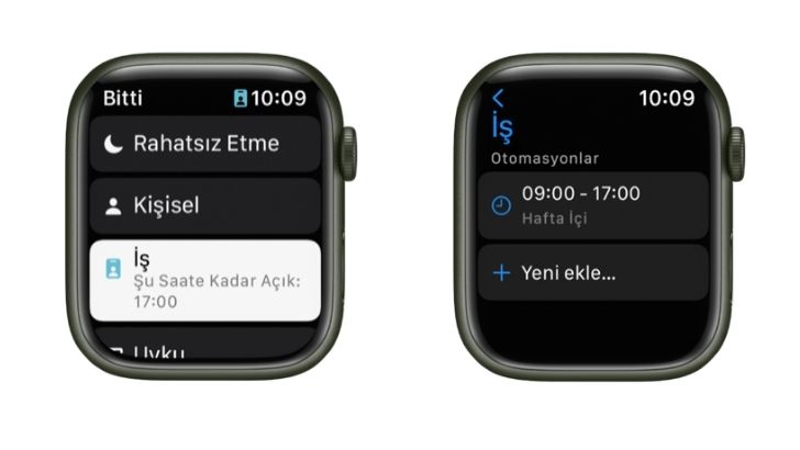 - Apple Watch kullanıcıları, bildirimleri o anda yaptıkları işe göre filtreleyebiliyorlar. Örneğin, yalnızca iş arkadaşlarından ve işle ilgili uygulamalardan gelen bildirimlere izin vermek için çalışma saatlerinde İş Odağı, arkadaşlar ve aile bireyleriyle birlikte geçirilen zamanlarda Kişisel Zaman Odağı ya da kullanıcının antrenman yaparken tamamen egzersizlere odaklanmasını sağlayan Fitness Odağı ayarlanabiliyor.