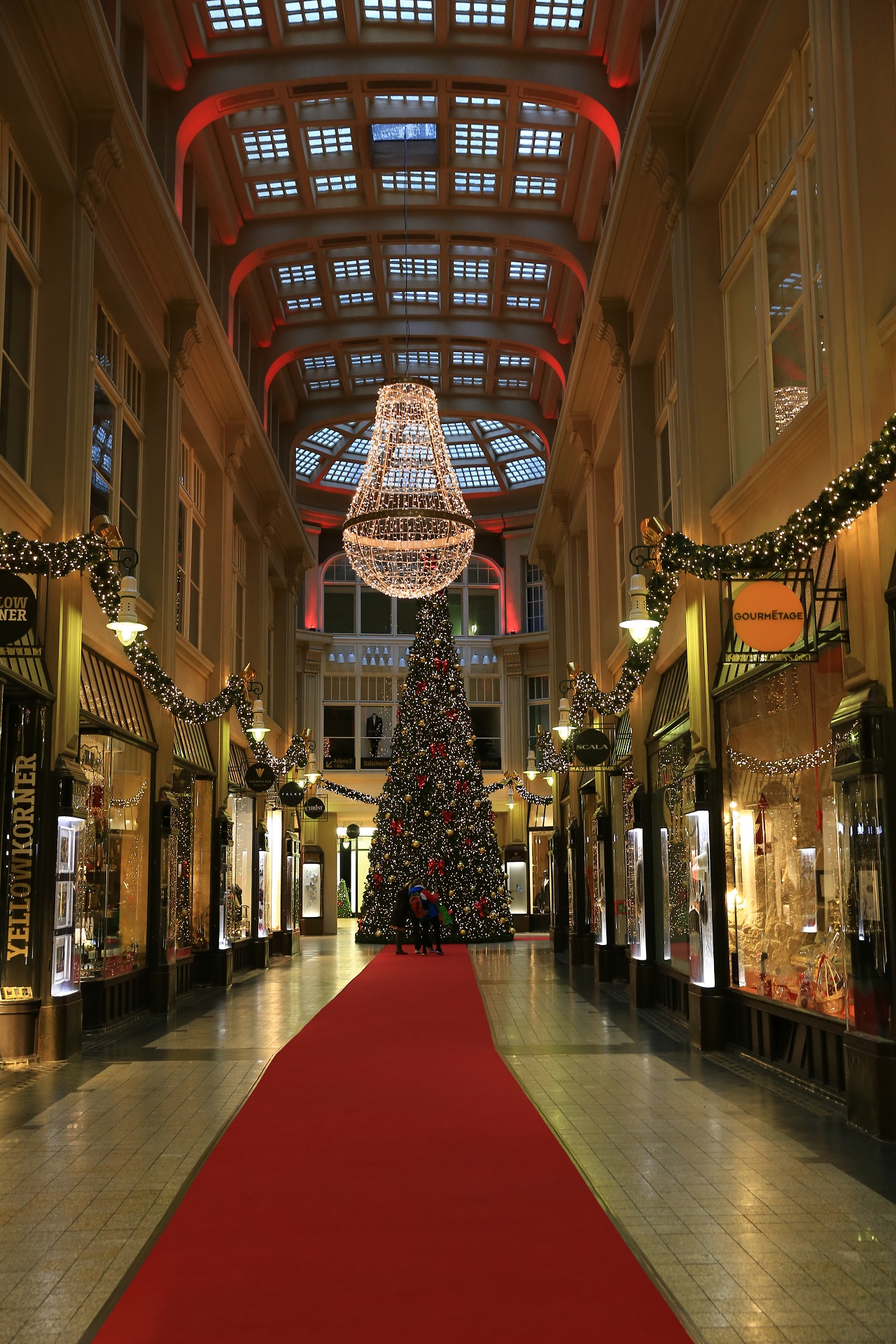 Eski şehir merkezinde bulunan Mädler Passage’ı dükkanlar kapalı olsa da gezebiliyorsunuz. Pasajda süslenmiş büyük bir çam ağacı da bulunuyor.