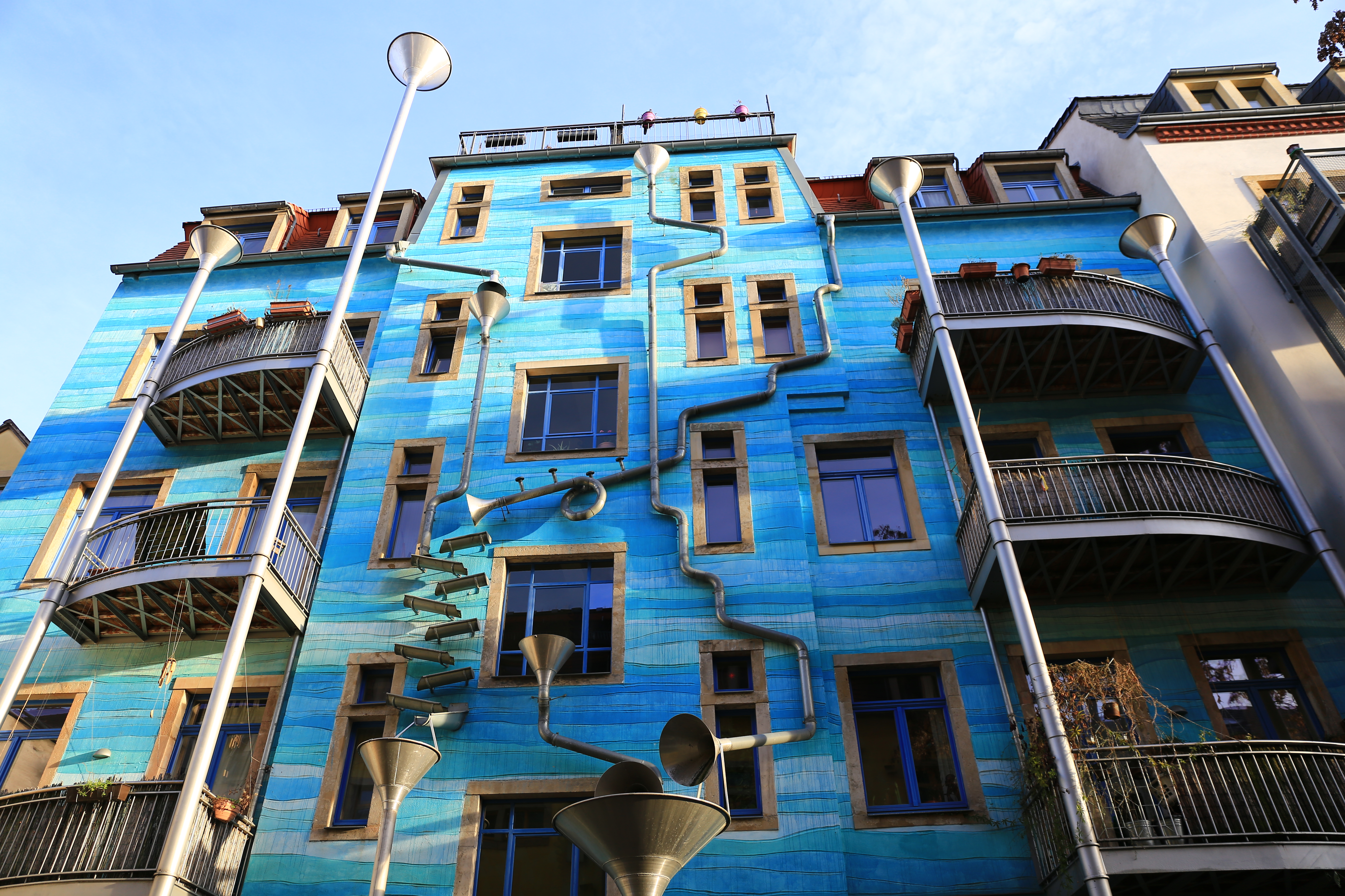 Kunsthofpassage Dresden, çeşitli mağaza, kafe ve renkli binalar ile yağmur yağınca müzik çalan binanın olduğu keyifli vakit geçirebileceğiniz bir yer.