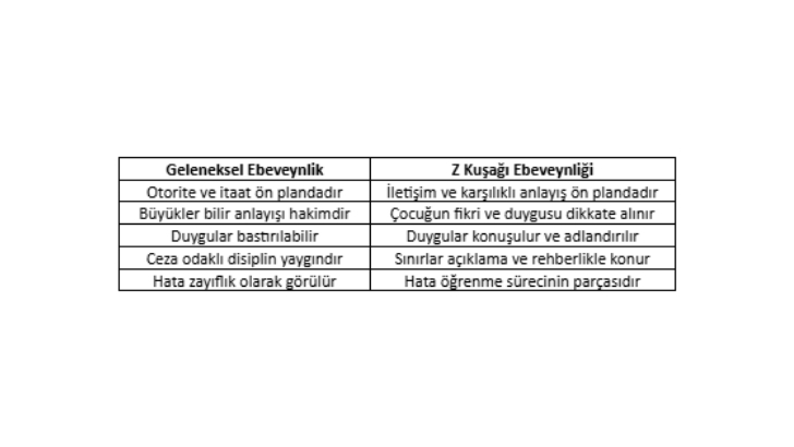 Z kuşağı ve geleneksel ebeveynlik arasındaki farklar şöyle:
