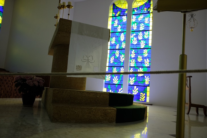 Zamanın çoğu sanatçısı gibi Matisse de Paris’i bırakıp Cote d’Azur’a gelir. O dönemde de kansere yakalanır. Doktorların tavsiyesi üzerine oraların yaylası olan Vence’te ev tutar. Bir hasta bakıcı işe alınır: Monique Bourgeois. Matisse hastalığını yener, Paris’e döner. Monique ise Dominic Rahibeleri Manastırı’na kapanır. Matisse ile aralarında bir gönül dostluğu oluşmuştur. Monique yıllar sonra Matisse’i köye dönmesi ve bir kilise tasarlaması için ikna eder. Papazlar ateist ve çıplak kadın resimleri çizen birinin kilise tasarlamasına itiraz ederler. Fakat sonunda Matisse kazanır. Matisse sadece kiliseyi tasarlamakla kalmaz, papaz kostümlerinden, renkli vitraylara kadar her şeyi kendisi üretir. Güneş batmaya başlayınca renkli cam vitraylardan güneş içeriye geçiyor ve şapel sürekli renk değiştiriyor. Papaz kıyafetlerine bayıldım, günümüzün hipster kıyafetleri gibi değil mi? Alt katta da Matisse müzesi var.