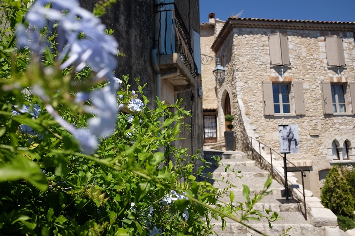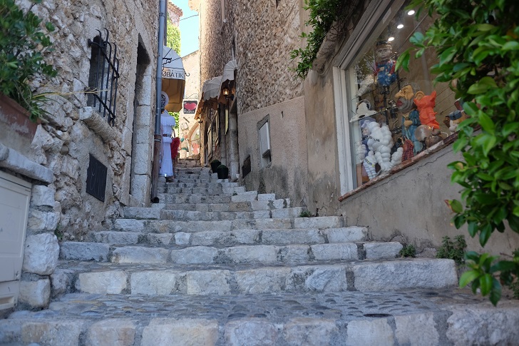 Köy Nice’ten 20 km uzaklıkta, otobüsle 1 saatte ulaşıyorsunuz. Bol yokuşlu yollardan kıvrıla kıvrıla geçip, sağınızda zeytin ve çam ağaçları içinde bir tepede tarihi bir filmden fırlamış gibi karşınıza çıkıyor. İçeri girdiğinizde bu kadarcık köyün ne kadar insanı alabildiğine hayret edeceksiniz.